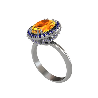 Sitrin ve lab safir 18 ayar beyaz altın yüzük