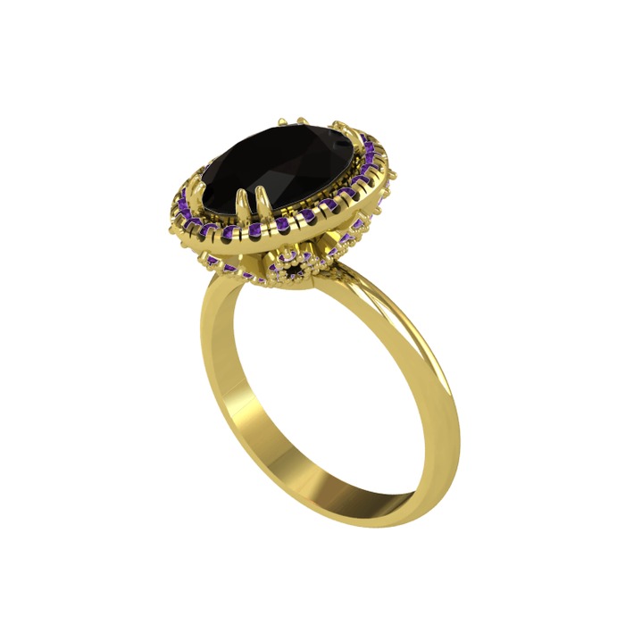 Siyah zirkon ve ametist 14 ayar altın yüzük