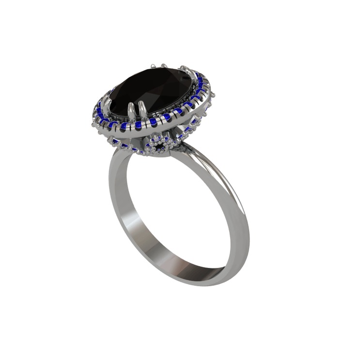 Siyah zirkon ve lab safir 925 ayar gümüş yüzük