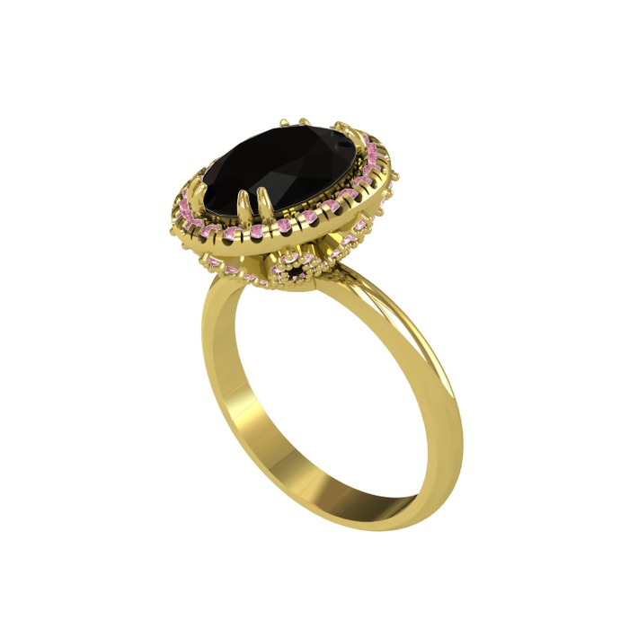 Siyah zirkon ve pembe kuvars 8 ayar altın yüzük