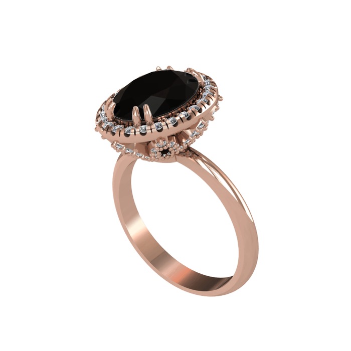 Siyah zirkon ve pırlanta 8 ayar rose altın yüzük (0.8448 karat)
