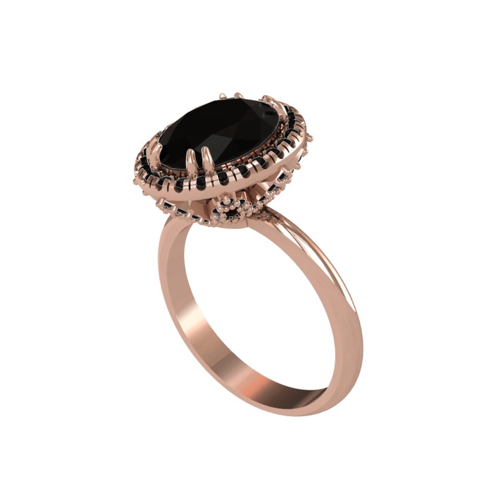 Siyah zirkon 925 ayar rose altın kaplama gümüş yüzük