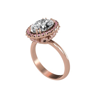 Swarovski ve pembe kuvars 14 ayar rose altın yüzük