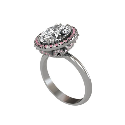 Swarovski ve pembe kuvars 8 ayar beyaz altın yüzük