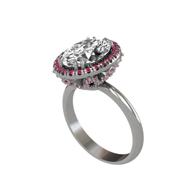 Swarovski ve rodolit garnet 14 ayar beyaz altın yüzük