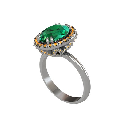 Yeşil kuvars ve sitrin 18 ayar beyaz altın yüzük