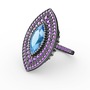 Akuamarin ve ametist 925 ayar siyah rodyum kaplama gümüş yüzük