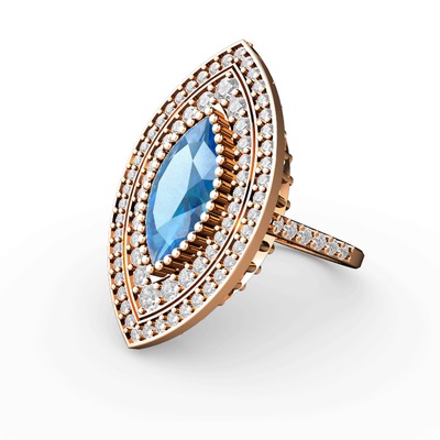 Akuamarin ve beyaz zirkon 925 ayar rose altın kaplama gümüş yüzük