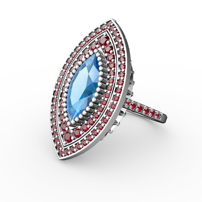 Akuamarin ve garnet 18 ayar beyaz altın yüzük