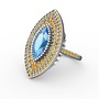 Akuamarin ve sitrin 8 ayar beyaz altın yüzük