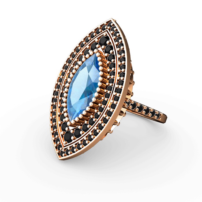 Akuamarin ve siyah zirkon 18 ayar rose altın yüzük