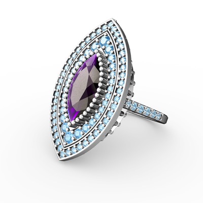 Ametist ve akuamarin 18 ayar beyaz altın yüzük