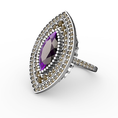Ametist ve dumanlı kuvars 925 ayar gümüş yüzük