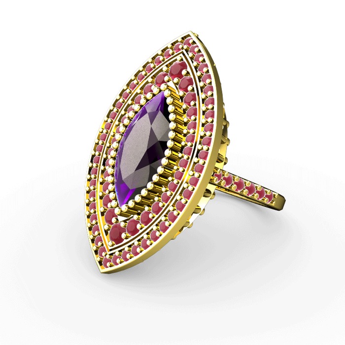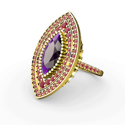 Ametist ve kök yakut 925 ayar altın kaplama gümüş yüzük