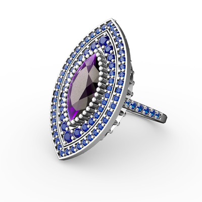Ametist ve lab safir 14 ayar beyaz altın yüzük