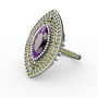 Ametist ve peridot 18 ayar beyaz altın yüzük
