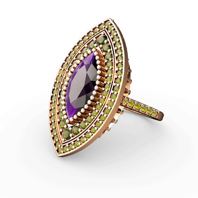 Ametist ve peridot 925 ayar rose altın kaplama gümüş yüzük