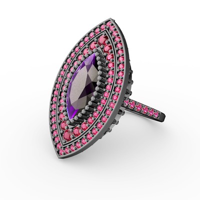 Ametist ve rodolit garnet 925 ayar siyah rodyum kaplama gümüş yüzük