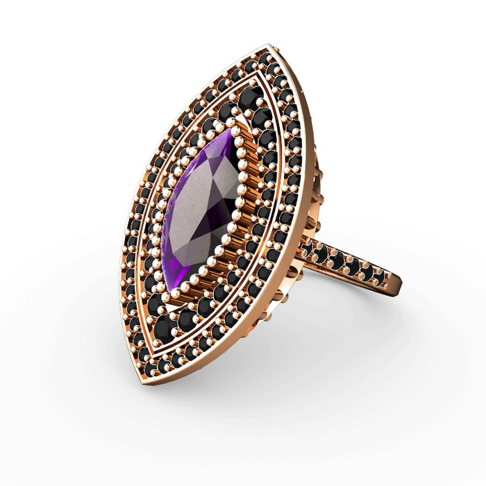 Ametist ve siyah zirkon 14 ayar rose altın yüzük