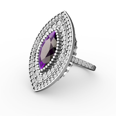 Ametist ve swarovski 8 ayar beyaz altın yüzük