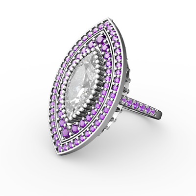 Beyaz zirkon ve ametist 8 ayar beyaz altın yüzük