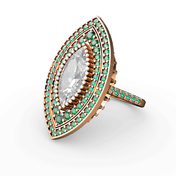 Beyaz zirkon ve yeşil kuvars 925 ayar rose altın kaplama gümüş yüzük