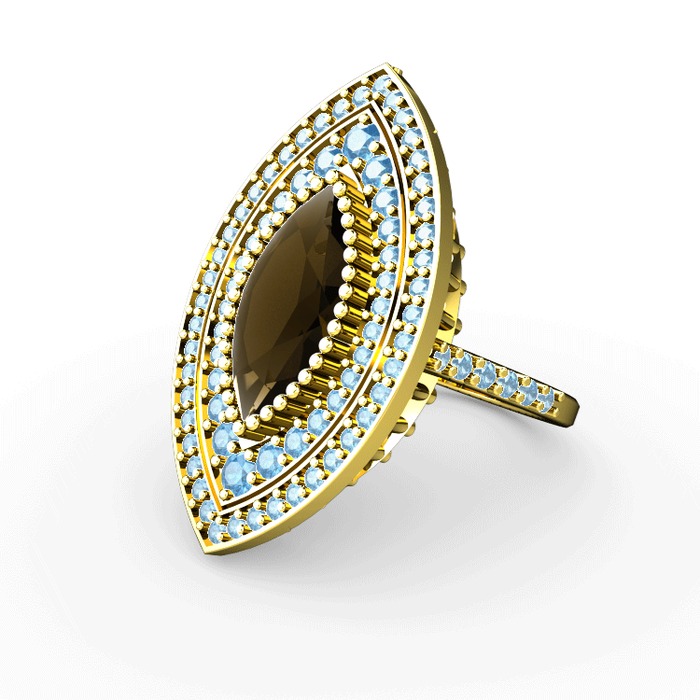 Dumanlı kuvars ve akuamarin 14 ayar altın yüzük