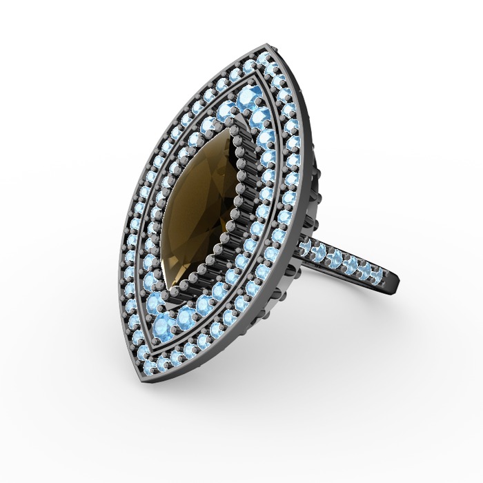 Dumanlı kuvars ve akuamarin 925 ayar siyah rodyum kaplama gümüş yüzük