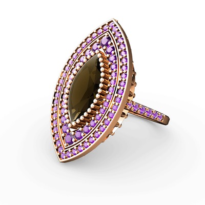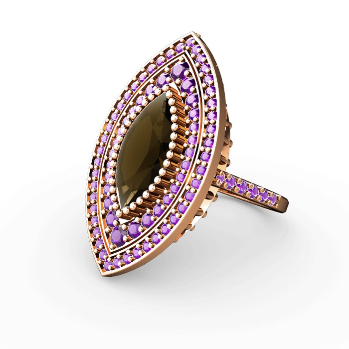 Dumanlı kuvars ve ametist 14 ayar rose altın yüzük
