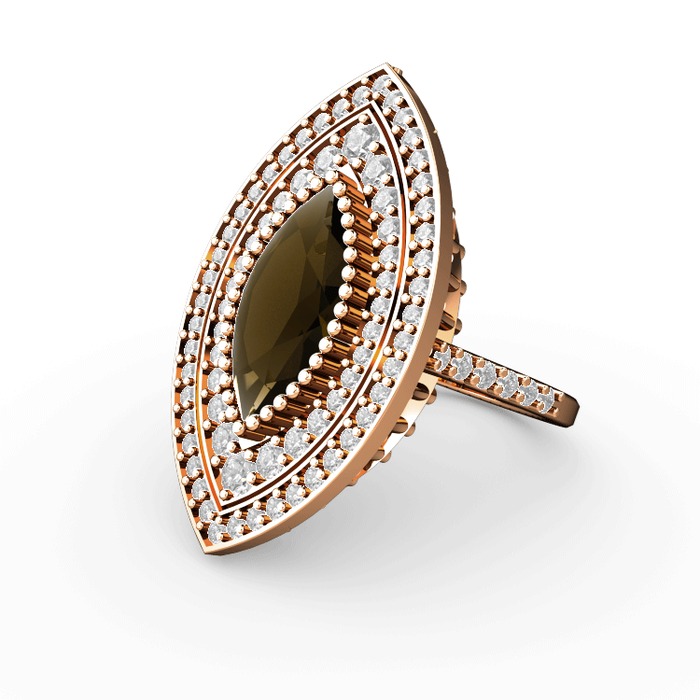 Dumanlı kuvars ve beyaz zirkon 14 ayar rose altın yüzük