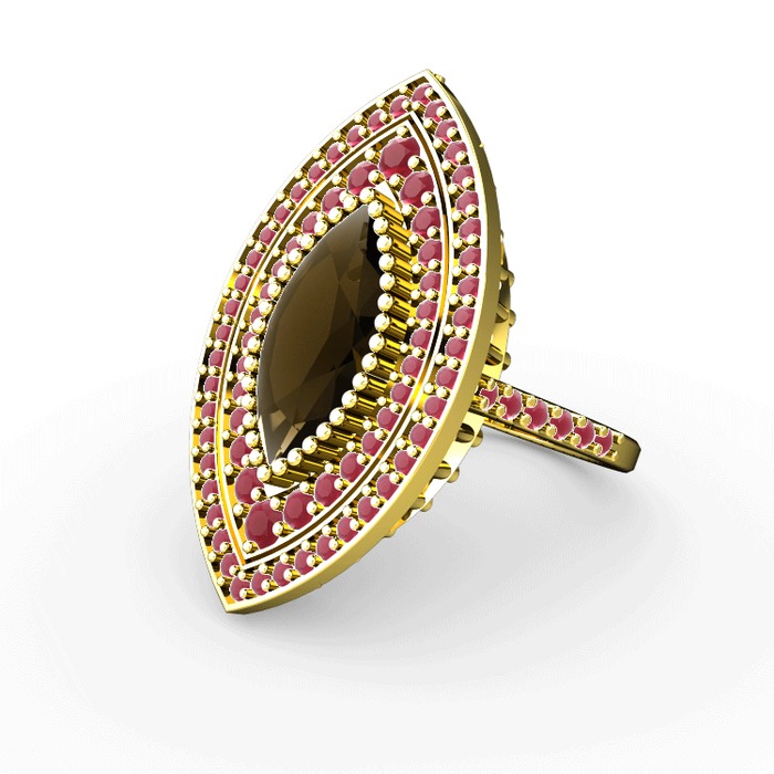 Dumanlı kuvars ve kök yakut 14 ayar altın yüzük