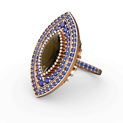 Dumanlı kuvars ve lab safir 8 ayar rose altın yüzük