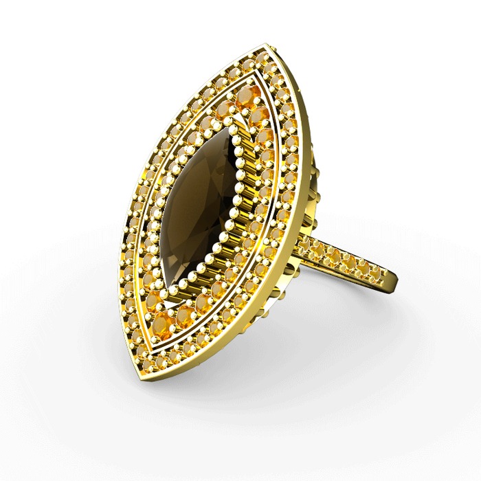 Dumanlı kuvars ve sitrin 18 ayar altın yüzük