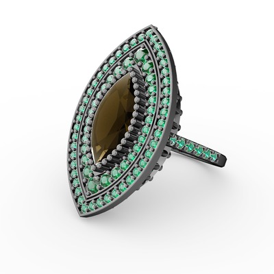 Dumanlı kuvars ve yeşil kuvars 925 ayar siyah rodyum kaplama gümüş yüzük