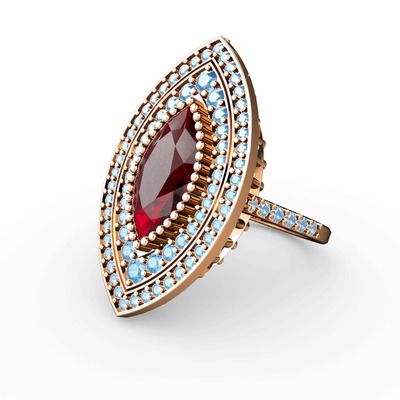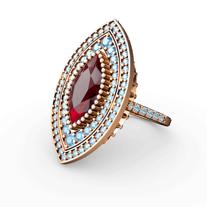Garnet ve akuamarin 8 ayar rose altın yüzük