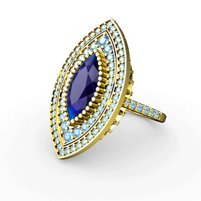 Lab safir ve akuamarin 18 ayar altın yüzük