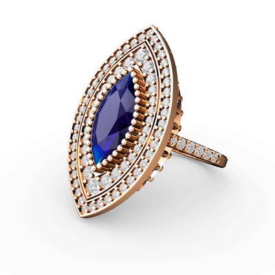 Lab safir ve beyaz zirkon 8 ayar rose altın yüzük
