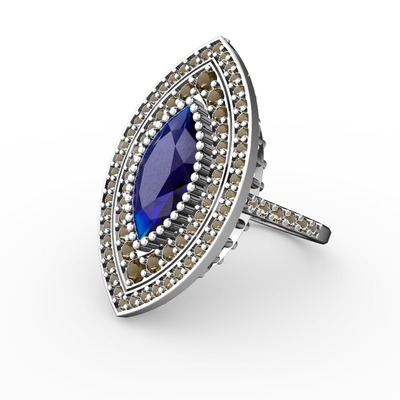 Lab safir ve dumanlı kuvars 18 ayar beyaz altın yüzük