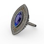 Lab safir ve dumanlı kuvars 925 ayar siyah rodyum kaplama gümüş yüzük