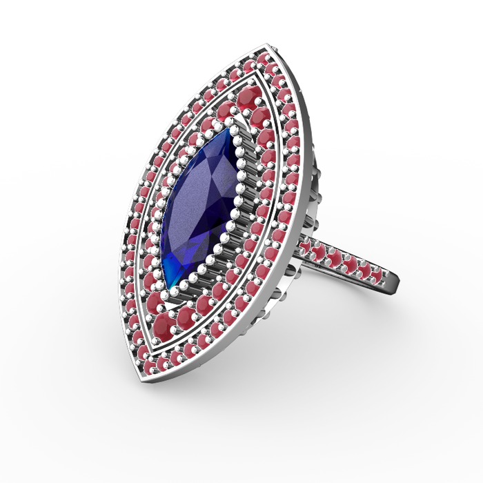 Lab safir ve kök yakut 18 ayar beyaz altın yüzük