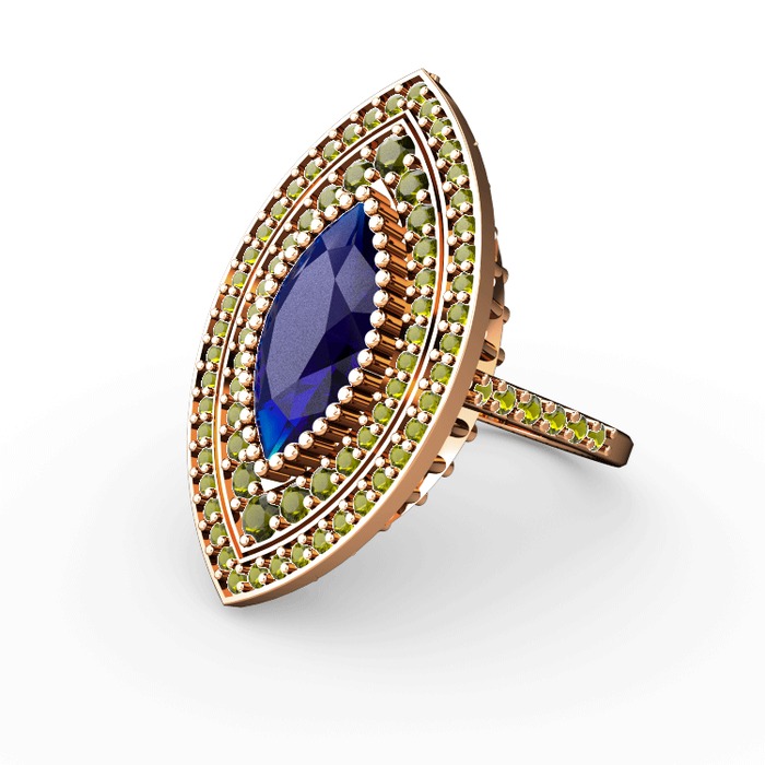 Lab safir ve peridot 925 ayar rose altın kaplama gümüş yüzük