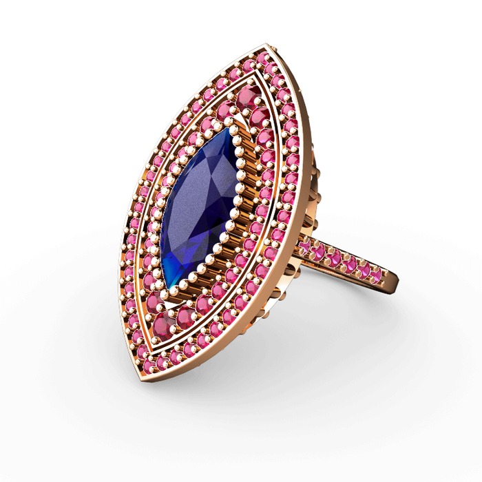 Lab safir ve rodolit garnet 14 ayar rose altın yüzük
