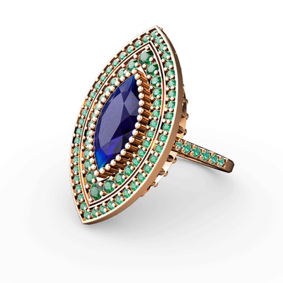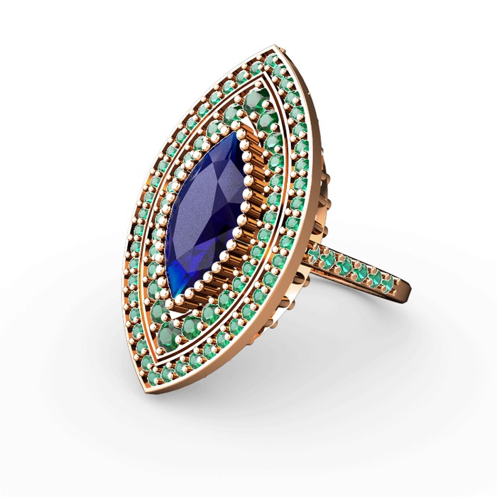 Lab safir ve yeşil kuvars 925 ayar rose altın kaplama gümüş yüzük