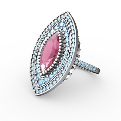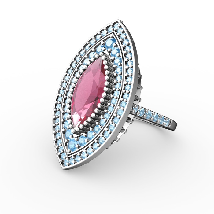Pembe kuvars ve akuamarin 14 ayar beyaz altın yüzük