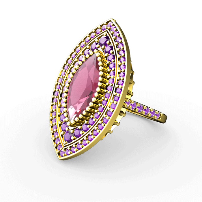 Pembe kuvars ve ametist 8 ayar altın yüzük