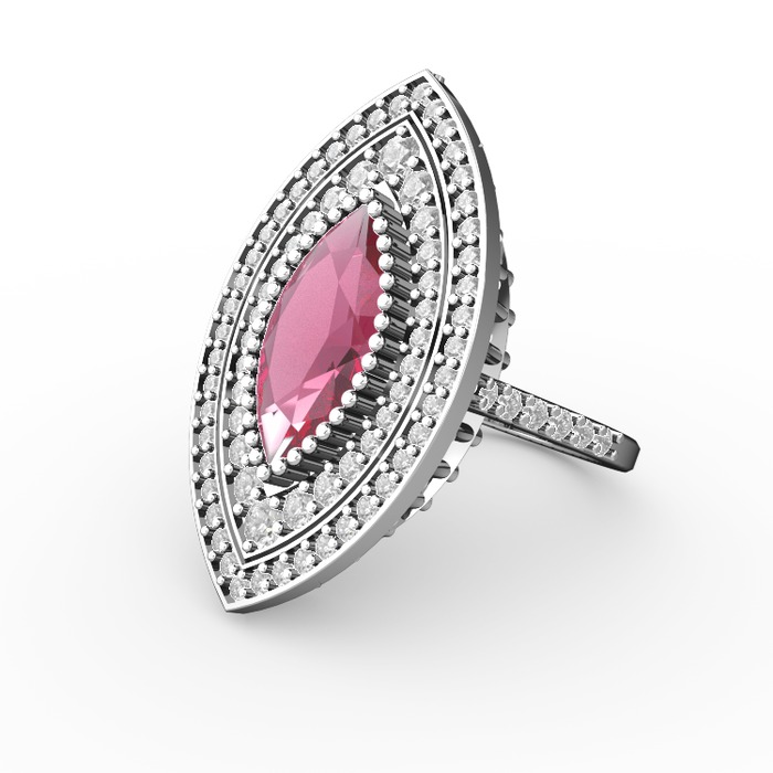 Pembe kuvars ve beyaz zirkon 18 ayar beyaz altın yüzük