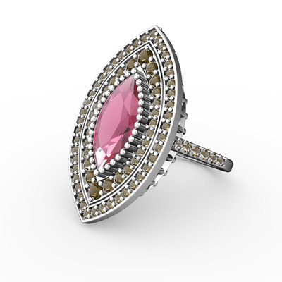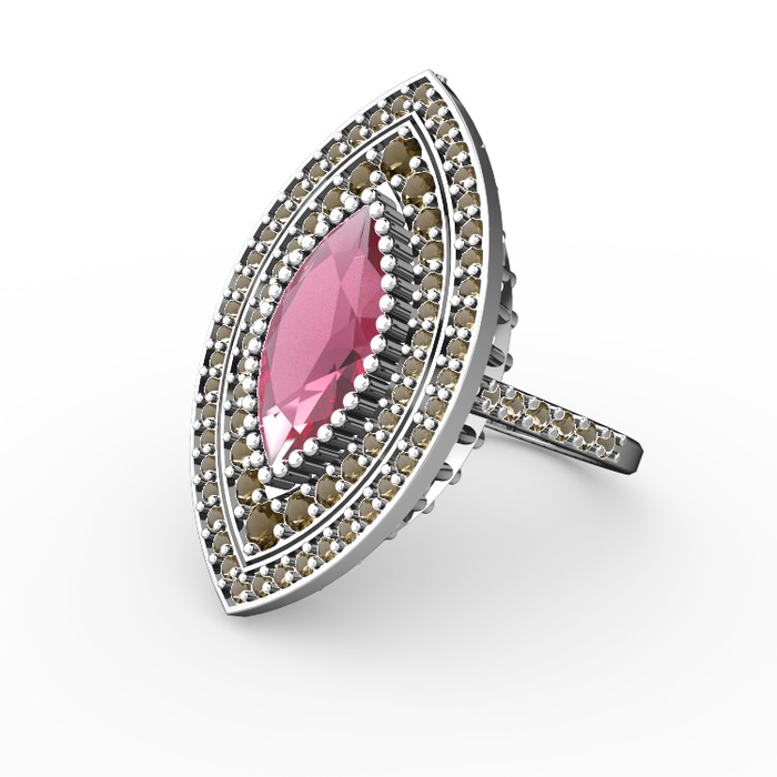 Pembe kuvars ve dumanlı kuvars 14 ayar beyaz altın yüzük