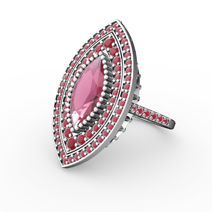 Pembe kuvars ve kök yakut 18 ayar beyaz altın yüzük