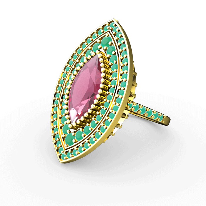 Pembe kuvars ve kök zümrüt 925 ayar altın kaplama gümüş yüzük