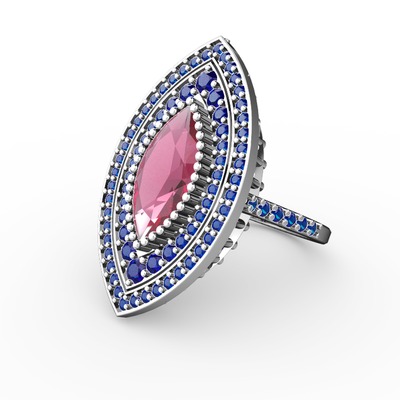 Pembe kuvars ve lab safir 18 ayar beyaz altın yüzük